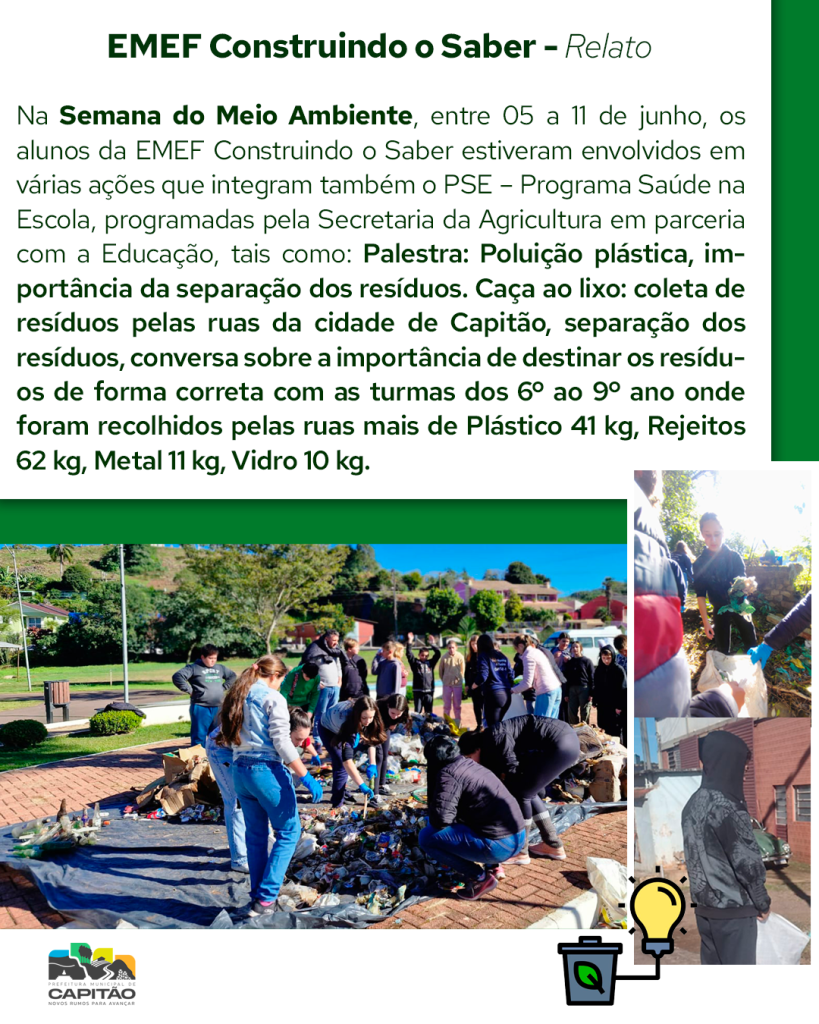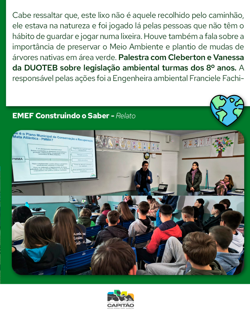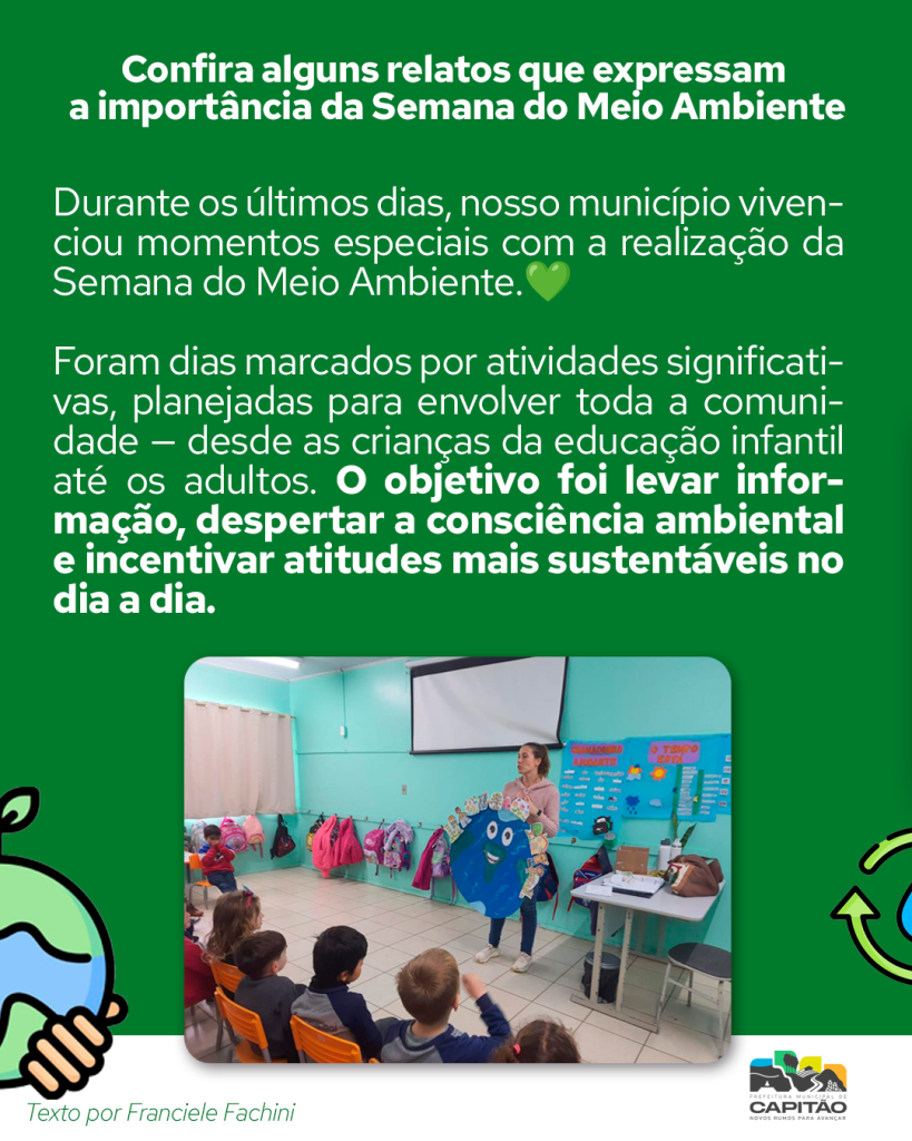 Relembre os destaques da Semana do Meio Ambiente em Capitão♻️