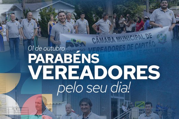Neste 1º de outubro, a Prefeitura de Capitão celebra o Dia do Vereador, homenageando os agentes políticos que dedicam seu tempo e esforço às causas do município.