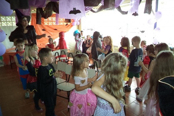 No entanto a atividade que mais chamou atenção dos pequenos foi sugerida por eles durante uma roda de conversa onde os mesmos expressaram a vontade de se vestirem com as fantasias dos personagens imaginários então neste sentido as professoras programaram uma “Festa á Fantasia” para a integração e culminância do respectivo tema.