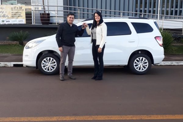A Secretária Municipal da Assistência Social, Trabalho e Habitação, Cassiane Lorenzon Scheidt, recebeu, hoje, das mãos do Prefeito Municipal Paulo César Scheidt, as chaves do novo veículo adquirido pela Secretaria. A aquisição foi realizada com recursos federais, complementados por recursos municipais, num total de R$74.900,00. O veículo é uma Chevrolet GM Spin LTZ 1.8 8V SPE4 2018, 07 lugares, que será utilizada pela equipe nos diversos serviços prestados pela secretaria.