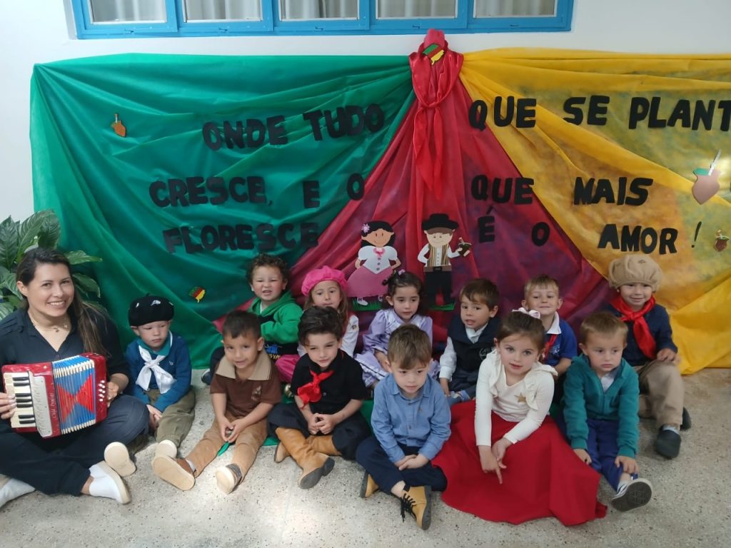 A EMEI Mundo da Criança concluiu, nesta sexta-feira (26/09), as atividades especiais referente ao Mês Farroupilha. A iniciativa, voltada para os alunos da instituição, promoveu uma imersão na cultura gaúcha ao longo do mês.