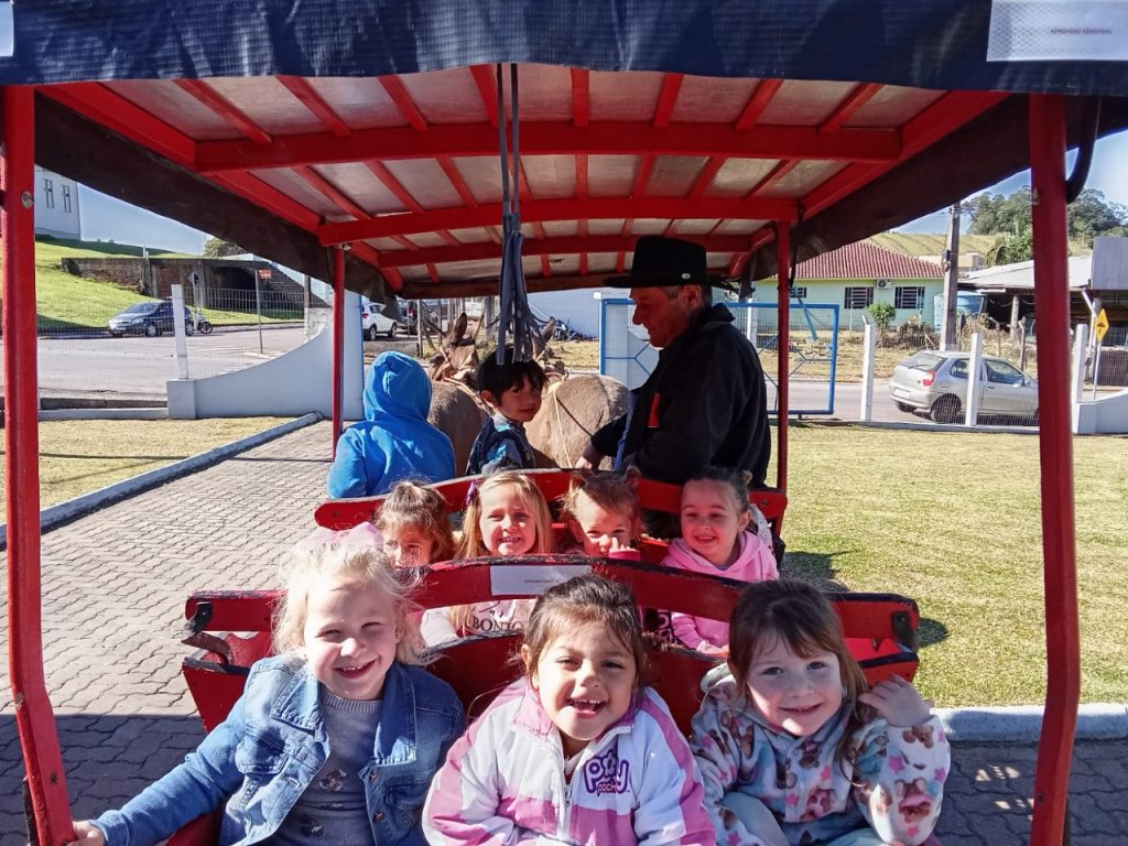 Para marcar o encerramento, foi realizado um passeio de charrete. O senhor Neudir Tonezer visitou a escola com sua charrete e conduziu as crianças em uma volta ao ar livre, proporcionando uma experiência cultural e recreativa. A ação teve como objetivo conectar os alunos com as tradições e a história da nossa região.