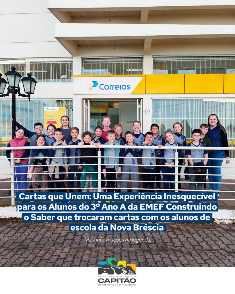 Em setembro, os alunos do 3º ano A da EMEF Construindo o Saber, tiveram a oportunidade de escrever e enviar cartas para a turma do 3⁰ ano da E.M.E.F Madre Assunta do município de Nova Bréscia. Essa iniciativa está dentro do projeto “Janelas da Comunicação ” onde proporcionou uma experiência rica em descobertas, desde o aprendizado sobre a importância da comunicação escrita até a vivência prática do processo de envio postal.