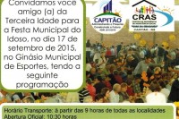 A Administração Municipal através do Gabinete da Primeira Dama convidam todos os amigos da Terceira Idade para a 22° Festa Municipal do Idoso, que acontecerá no dia 17 de setembro, quinta feira, no Ginásio Municipal de Esportes. As inscrições para a festa estão sendo realizadas pelas agentes de saúde, e… Leia mais