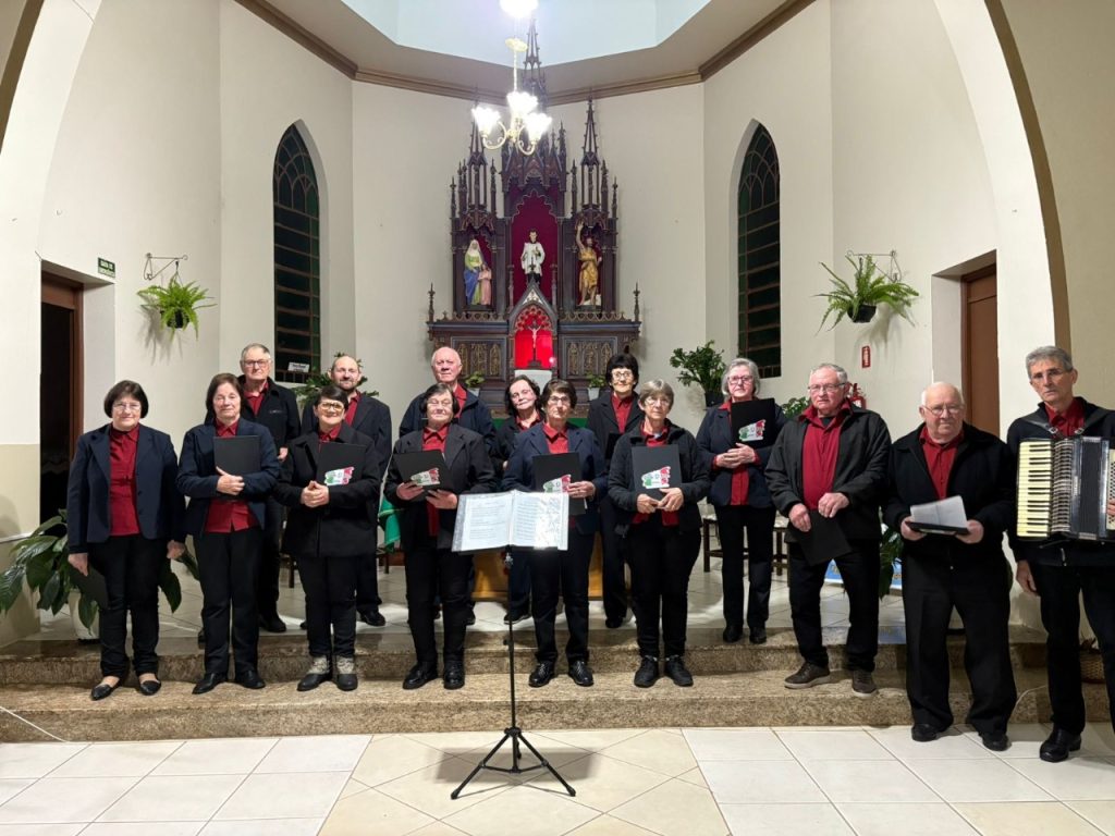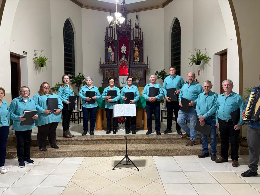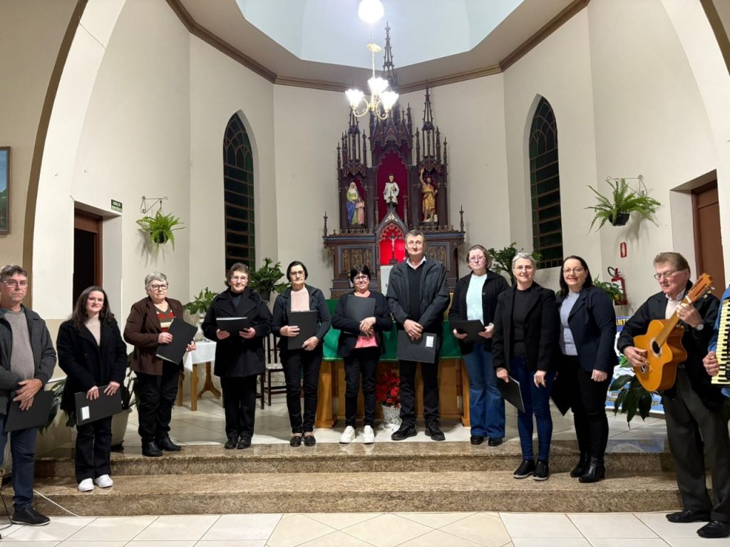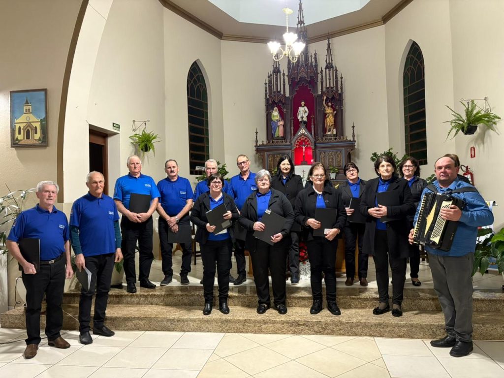 O Padre Luciano destacou a importância da participação nos corais, lembrando que “quem canta, seus males espanta”, reforçando o valor da música como expressão de alegria, união e bem-estar.