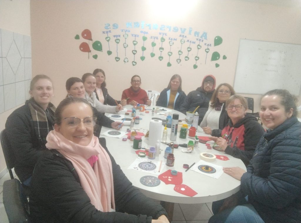 Com a participação da oficineira Ione Torrontegui, a Enfermeira Sheila Alff e as Agentes Comunitárias de Saúde Débora Guerini, Jéssica Castoldi e Juliana Giareta, as participantes puderam compartilhar experiências e fortalecer os laços comunitários. 💖✂