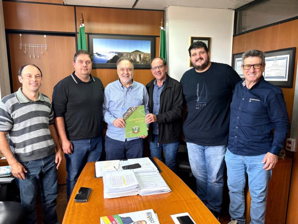 Nesta quarta-feira (04), o Prefeito Maninho, acompanhado do Vereador Marcelo Martinelli, Renato Ames (Presidente do MDB) e Marcos Hennika, esteve reunido com o Secretário de Logística e Transportes do RS, Juvir Costella, para solicitar a liberação do valor do equilíbrio referente à VRS 482. Também participou do encontro o Assessor do Secretário, Elton Fontana.