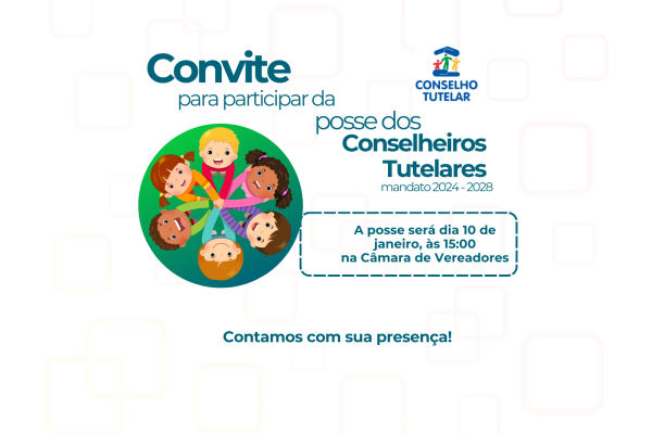 Na tarde do dia 10 de janeiro, às 15h, tomarão posse os cinco Conselheiros Tutelares eleitos em outubro de 2023. A cerimônia de posse será realizada na sede da Câmara Municipal de Vereadores e terá a presença de autoridades do município, bem como dos Conselheiros do COMDICA (Conselho Municipal dos Direitos da Criança e do Adolescente), o qual coordenou todo o processo eleitoral.