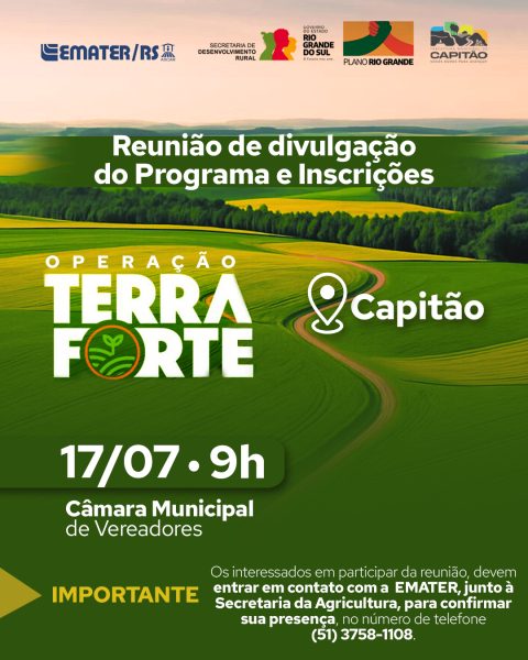 📢 Todos os produtores do município estão convidados para uma reunião de esclarecimentos sobre o Programa Operação Terra Forte!