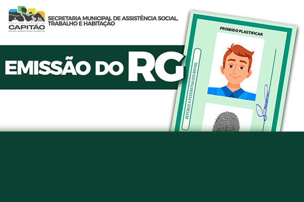 A Prefeitura Municipal de Capitão, por meio do CRAS (Centro de Referência de Assistência Social), está realizando o encaminhamento para emissão do Documento de Identidade (RG). O atendimento ocorre às segundas e terças-feiras, das 8h às 14h, sem fechar ao meio-dia, sendo obrigatório o agendamento prévio pelo telefone (51) 3758-1323.