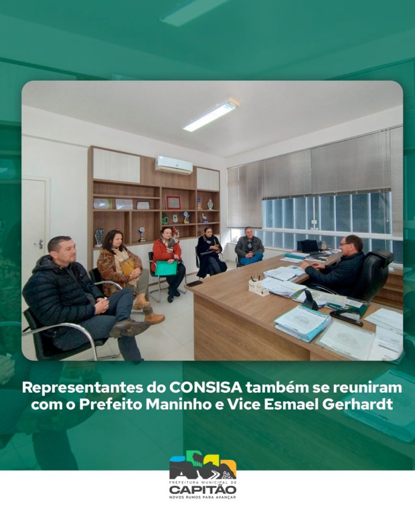 Durante a visita, as representantes do CONSISA reuniram-se com o Prefeito Maninho, o Vice-Prefeito Esmael Gerhardt e o Secretário Executivo do CONSISA, Norberto Dalpian, no Gabinete Municipal. Na oportunidade, foram tratados diversos temas relativos à parceria entre o município e o consórcio, com destaque para as licitações compartilhadas anuais que registram preços de bens e serviços para os municípios consorciados, além dos credenciamentos permanentes para empresas em diversas áreas.