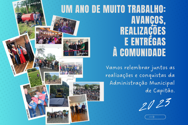 Ao encerrarmos o ano de 2023, é momento de refletir sobre as conquistas e realizações significativas alcançadas pela Administração Municipal de Capitão,
