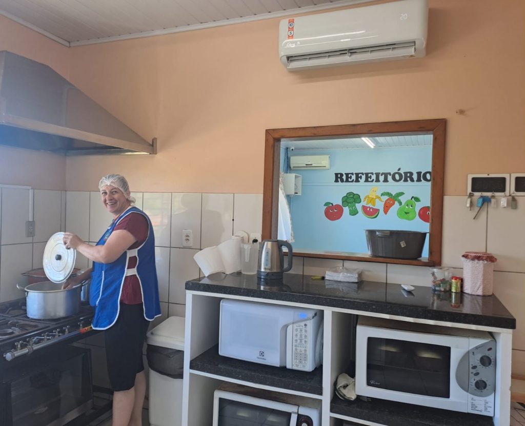 Além disso, na Escola Construindo o Saber, o refeitório também foi equipado com ar condicionado, garantindo um ambiente mais agradável e confortável para os momentos de refeição dos alunos.