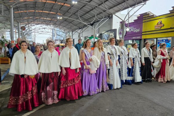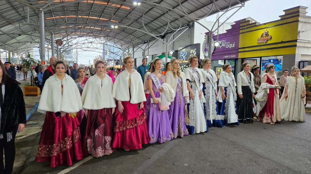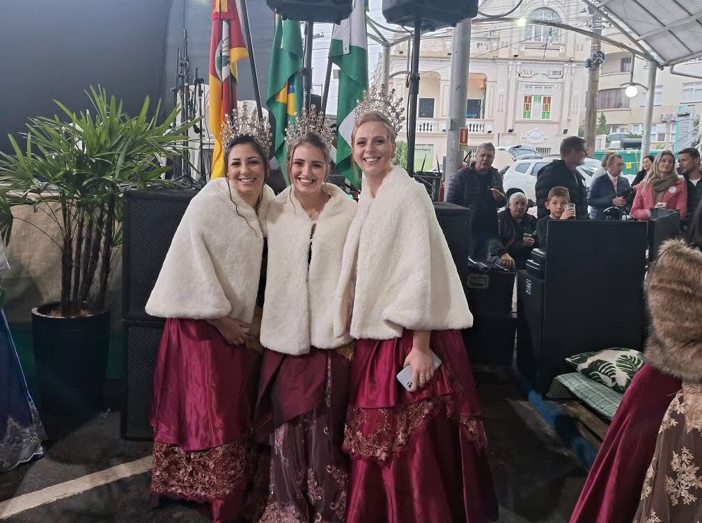 A Rainha Manuela Salton, a 1ª Princesa Chaiana da Maia Cadore e a 2ª Princesa Patrícia Borsatto representaram Capitão com elegância e dedicação, destacando a importância das soberanas como embaixadoras da tradição e da identidade do município.