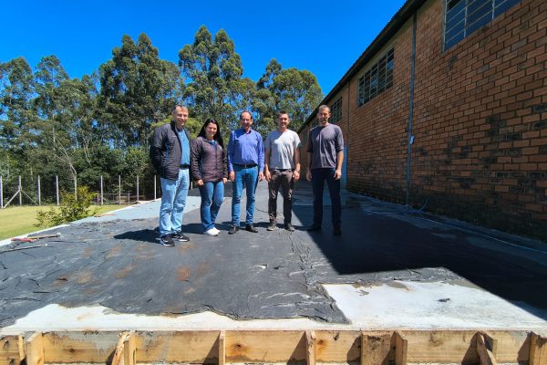 A equipe da Secretaria de Educação, liderada pelo secretário Felipe Lorenzon, acompanhada pelo prefeito Márcio André da Costa e pelo vice-prefeito Esmael Gerhardt, realizou uma visita às obras de ampliação do Ginásio Municipal de Esportes, que já se encontram em estágio avançado. Nesta semana, foi realizada a concretagem do primeiro piso.
