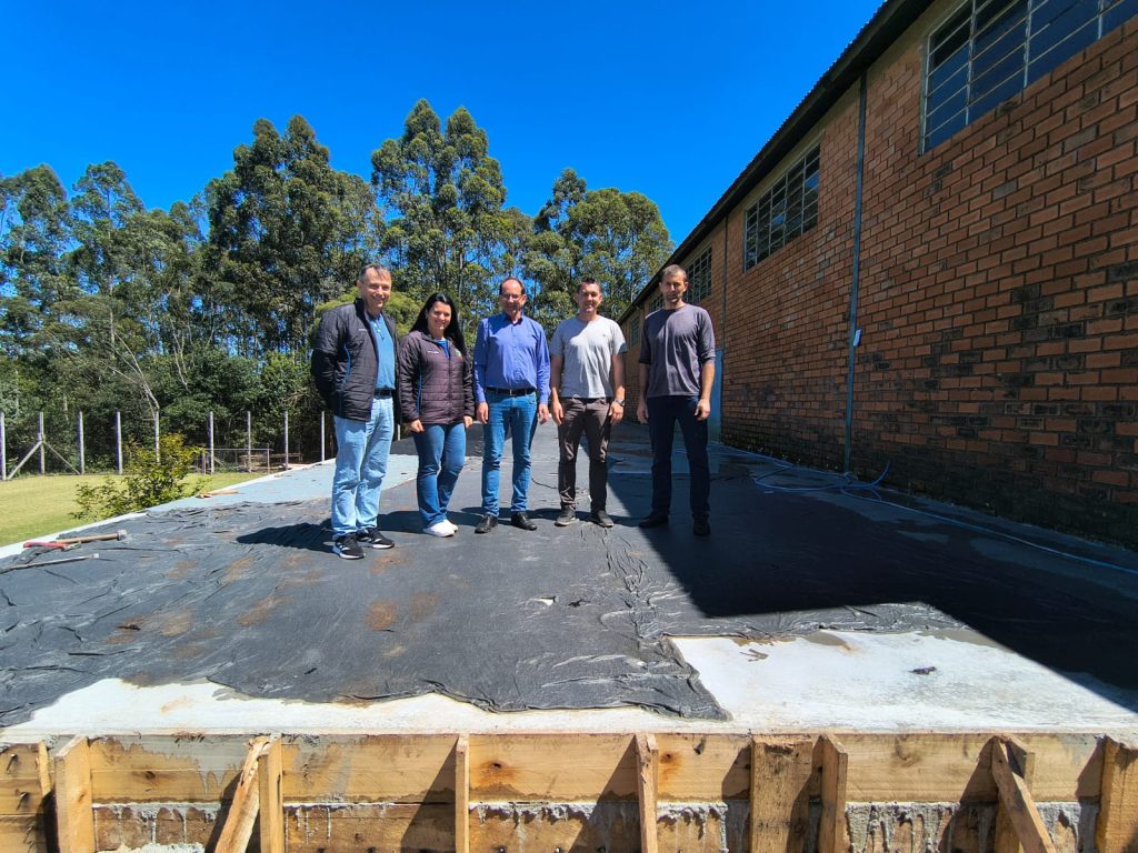 A equipe da Secretaria de Educação, liderada pelo secretário Felipe Lorenzon, acompanhada pelo prefeito Márcio André da Costa e pelo vice-prefeito Esmael Gerhardt, realizou uma visita às obras de ampliação do Ginásio Municipal de Esportes, que já se encontram em estágio avançado. Nesta semana, foi realizada a concretagem do primeiro piso.